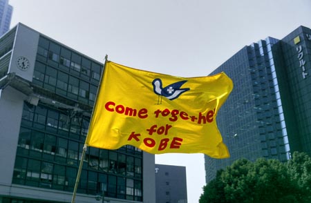 Everybody came up with the catch phrase "Come together for KOBE". I put a hurt seagull design with the phrase. The design grew to a charity T-shirt exhibition by 150 designers and artists. We had exhibitions at Kobe, Kyoto, and Tokyo, which gave many more people the chance to support the victims of the quake.